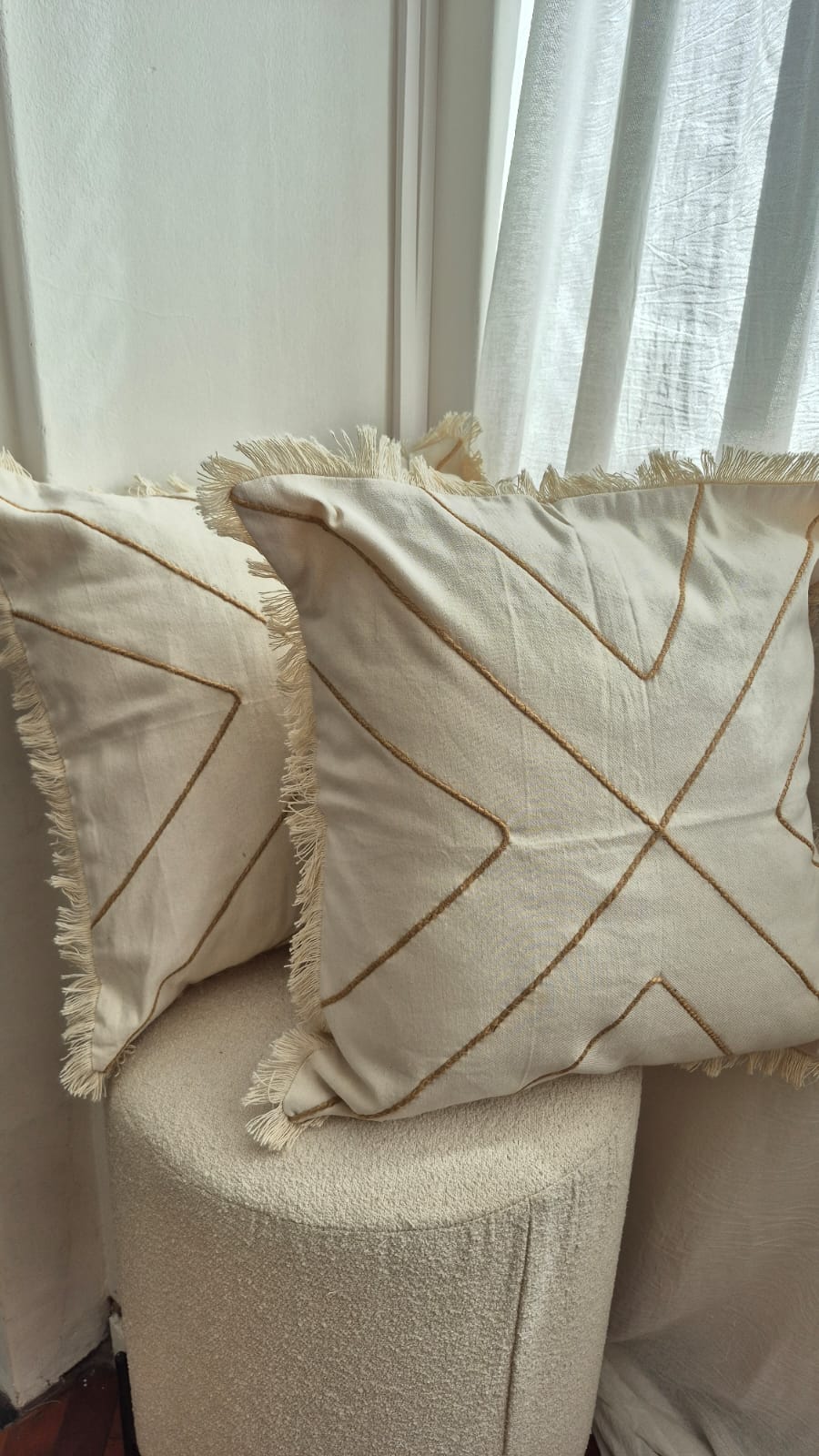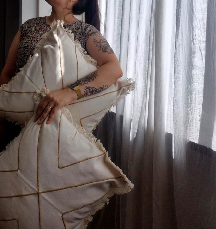 Nuestra funda Siena (50x50 cm) está confeccionada en lona suave y resistente, con delicados detalles en flecos que aportan textura y calidez. Su bordado lineal en tono natural crea un diseño sutil y elegante que combina fácilmente con distintos estilos de deco. Perfecta para sumar un toque artesanal y acogedor a tu living o dormitorio.