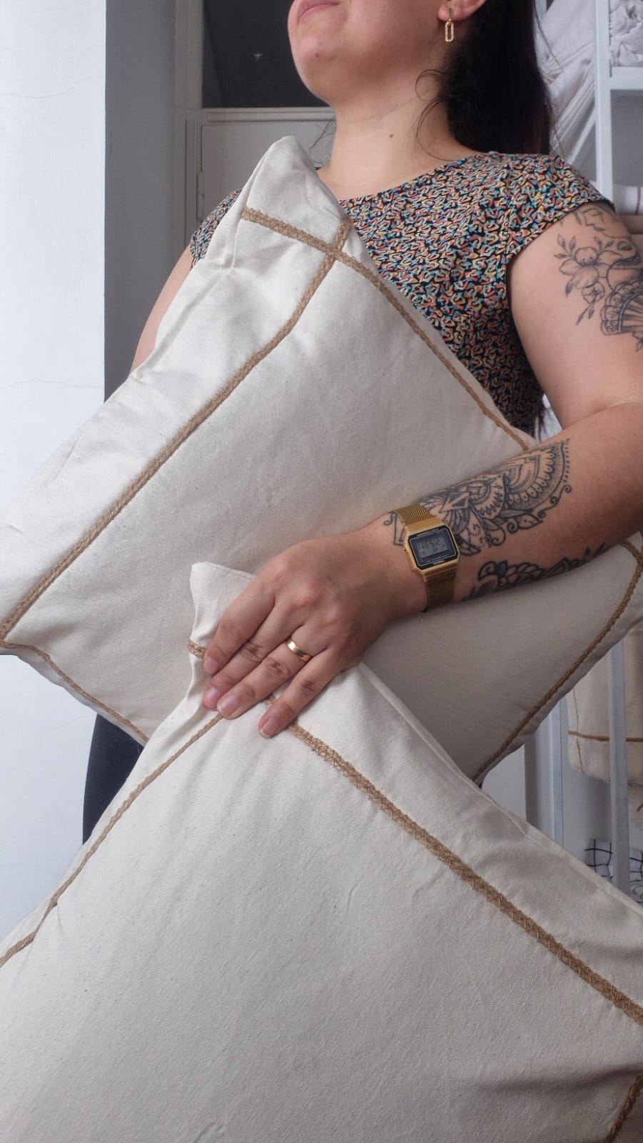 Nuestra funda Siena (50x50 cm) está confeccionada en lona suave y resistente, con delicados detalles en flecos que aportan textura y calidez. Su bordado lineal en tono natural crea un diseño sutil y elegante que combina fácilmente con distintos estilos de deco. Perfecta para sumar un toque artesanal y acogedor a tu living o dormitorio.