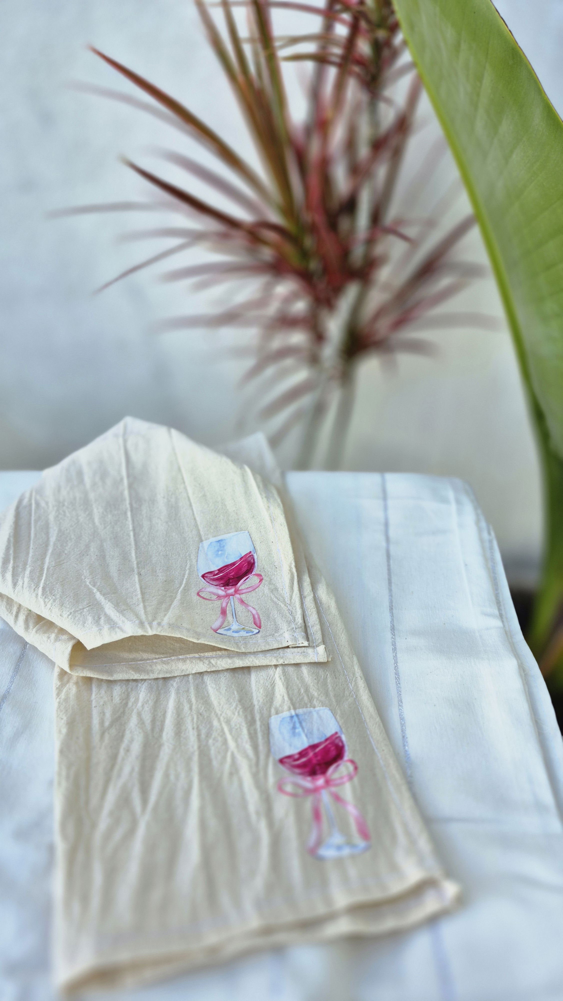 Incluye: 4 servilletas con diseño de copas